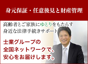 施設入居に必要な保証人、後見サポート、財産管理やエンディングのお手伝いまで、『お近くに身近な親族がおられない方』や、『親戚に頼りたくない』といった方のサポートや、遺言サポート・不動産の名義変更から不動産の売却などの相続手続きサポート、家族信託の組成サポートを士業ネットワークがワンストップでお届けします。